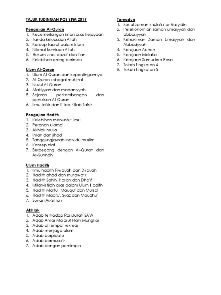 Tajuk Tudingan Pqs Spm 2019