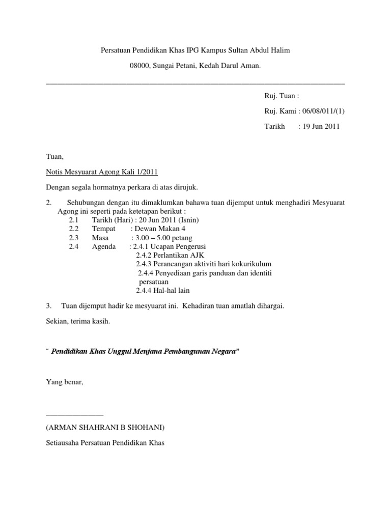 5 Contoh Surat Notis Mesyuarat Agung