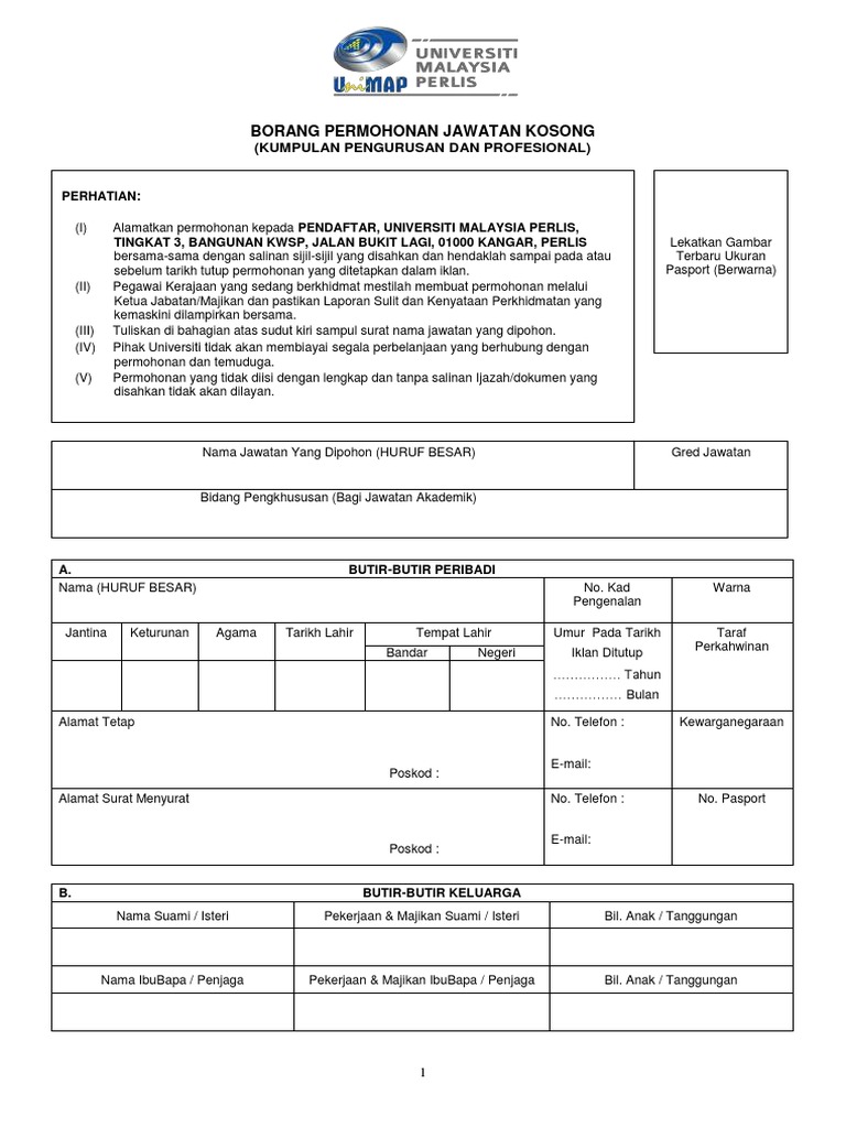 Unimap Borang Jawatan Kosong Pengurusan Profesional