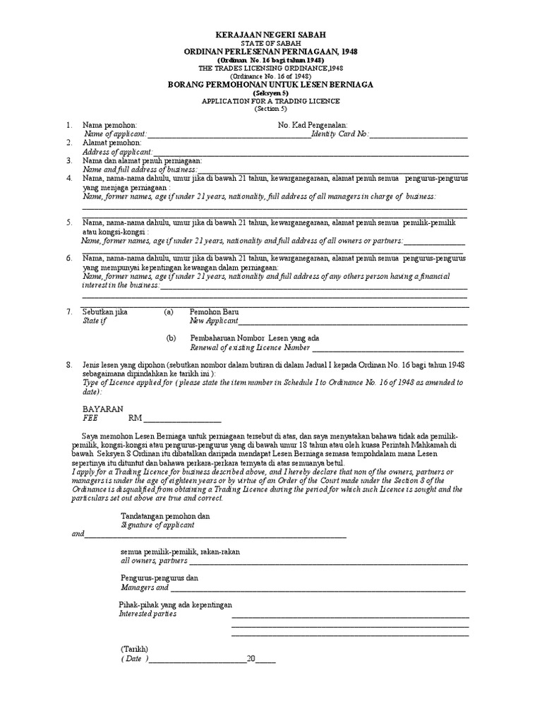 Jenis Jenis Lesen Perniagaan Sabah