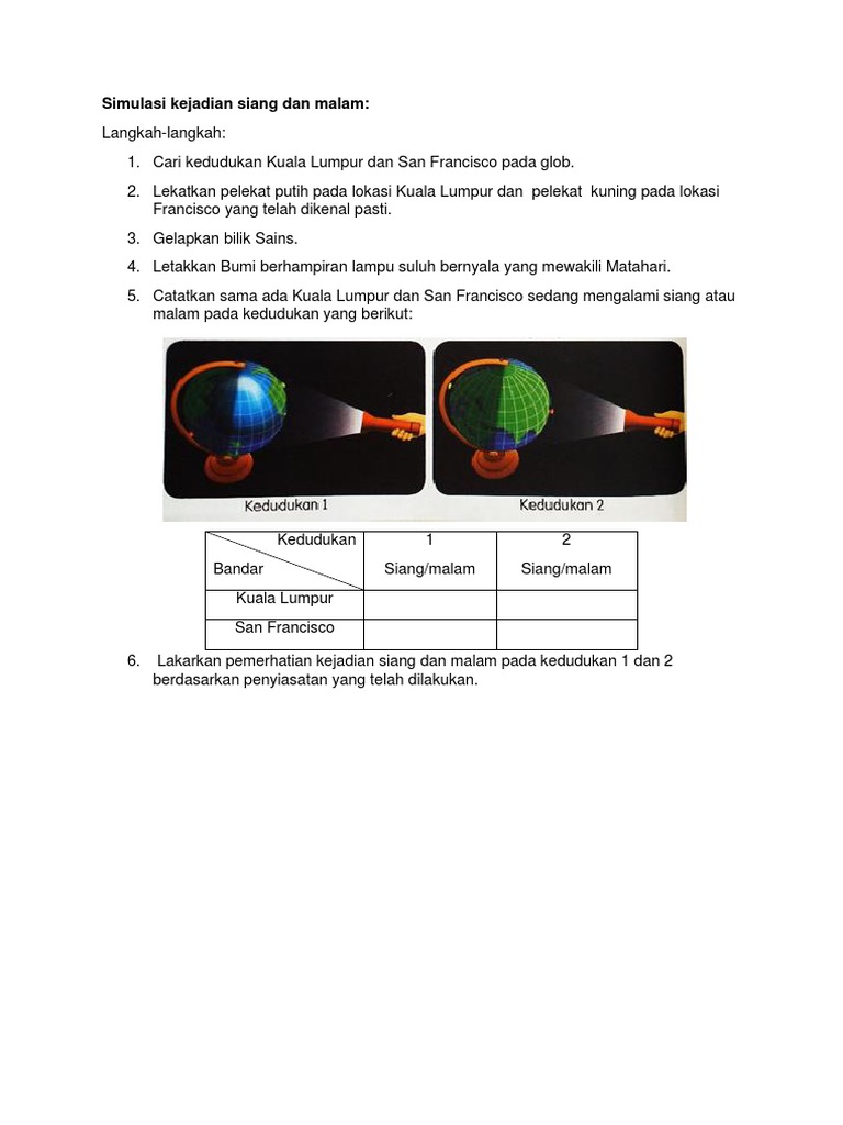 Selamat Datang Ke Taman Sains Tahun 5 Fenomena Alam Kejadian Siang Dan Malam