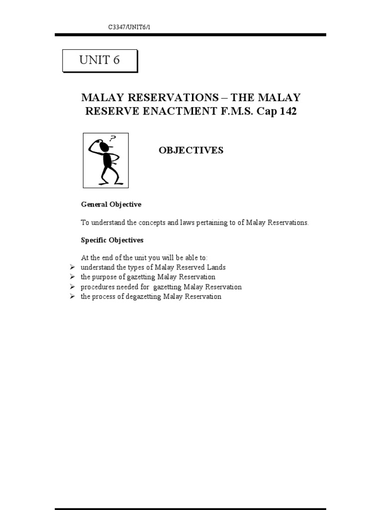 Unit 6 Malay Reservations The Malay Reserve Enactment F M S Cap 142 Malaysia Government Information
