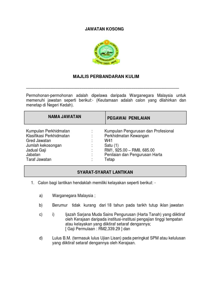 Deskripsi Tugas Pegawai Penilaian Gred W41 Dan Gaji Jawatan Kosong