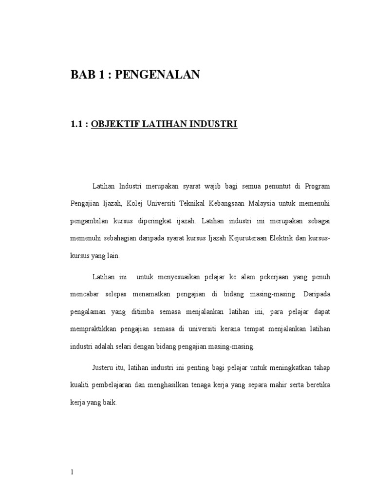 Bab 1 Pengenalan 1 1 Objektif Latihan Industri Latihan Industri Merupakan Syarat Wajib Bagi Semua Penuntut Di Program Pdf Download Gratis
