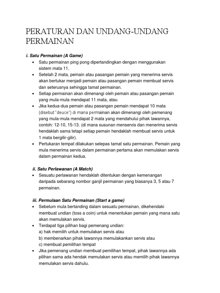 Syarat Dan Peraturan Permainan Pingpong
