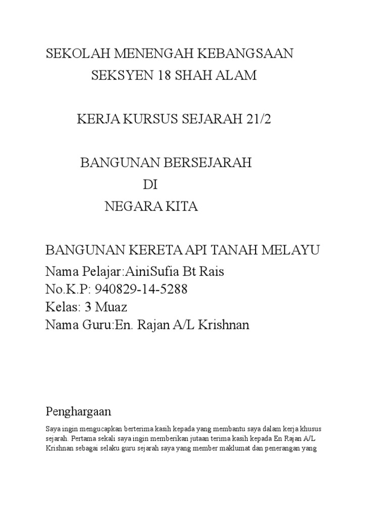 Tugasan Saifull Kerja Kursus Sejarah Bangunan Keretapi Tanah Melayu Tingkatan 3 2009