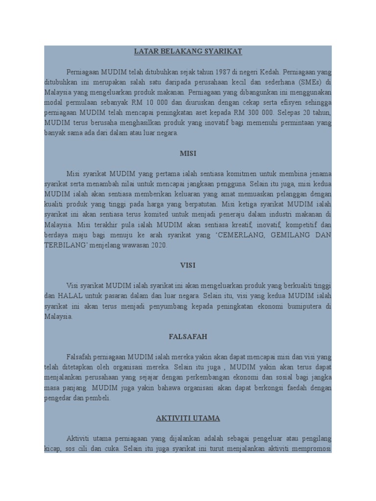 Visi Misi Dan Objektif Syarikat Faiza Sdn Bhd